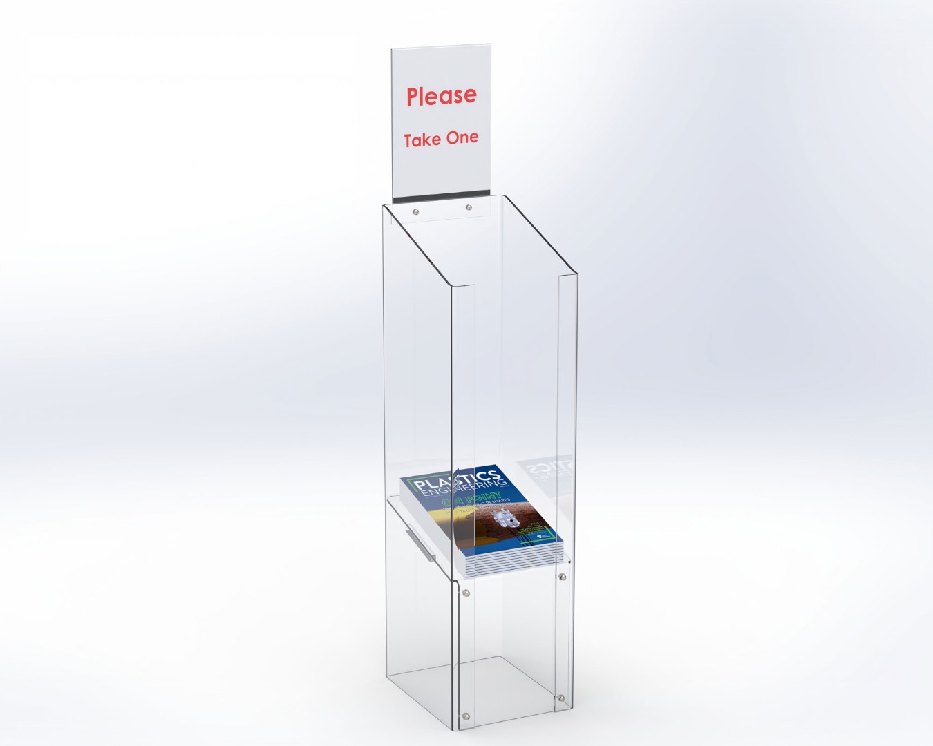 These A4 magazine and brochure stands provide a perfect display for retail shops, estate agents, news agents, DIY showrooms, furniture showrooms, NHS surgeries, waiting rooms, National Trust properties, Tourist Information centres - just about anywhere that brochures or magazines are available for the general public to pick up. The clear acrylic design with smooth polished edges, gives a minimalist, professional look to any display. Often known as a magazine or brochure "dump bin". The clear acrylic header pocket allows you to insert your own signs and posters to the top of the stand to draw attention, educate, or promote your products and services. A great value POS and showroom display unit for door entrances, queueing or waiting areas. We have seen these used to great effect with our custom printed freestanding 2000mm high flags