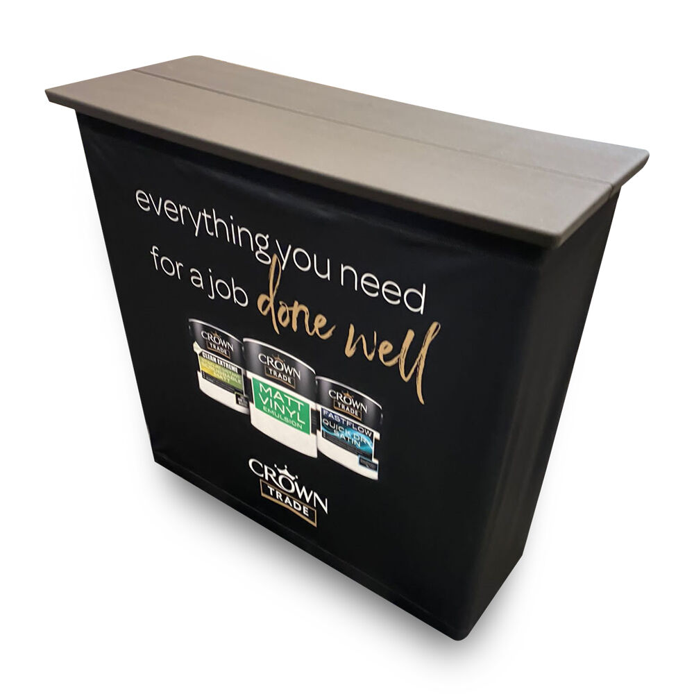 Designed with a straight, solid appearance, this promotional counter delivers strength, stability and a premium finish. Whether used indoors or outdoors, it provides a reliable and stylish platform to showcase your brand while maximising your marketing potential.